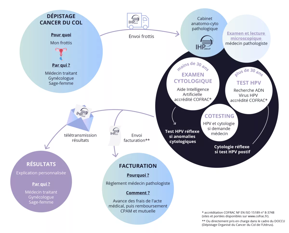 IHP Group vous accompagne tout au long des examens : du dépistage par frottis à la conisation, pour vous offrir un diagnostic de qualité et une prise en charge optimale.